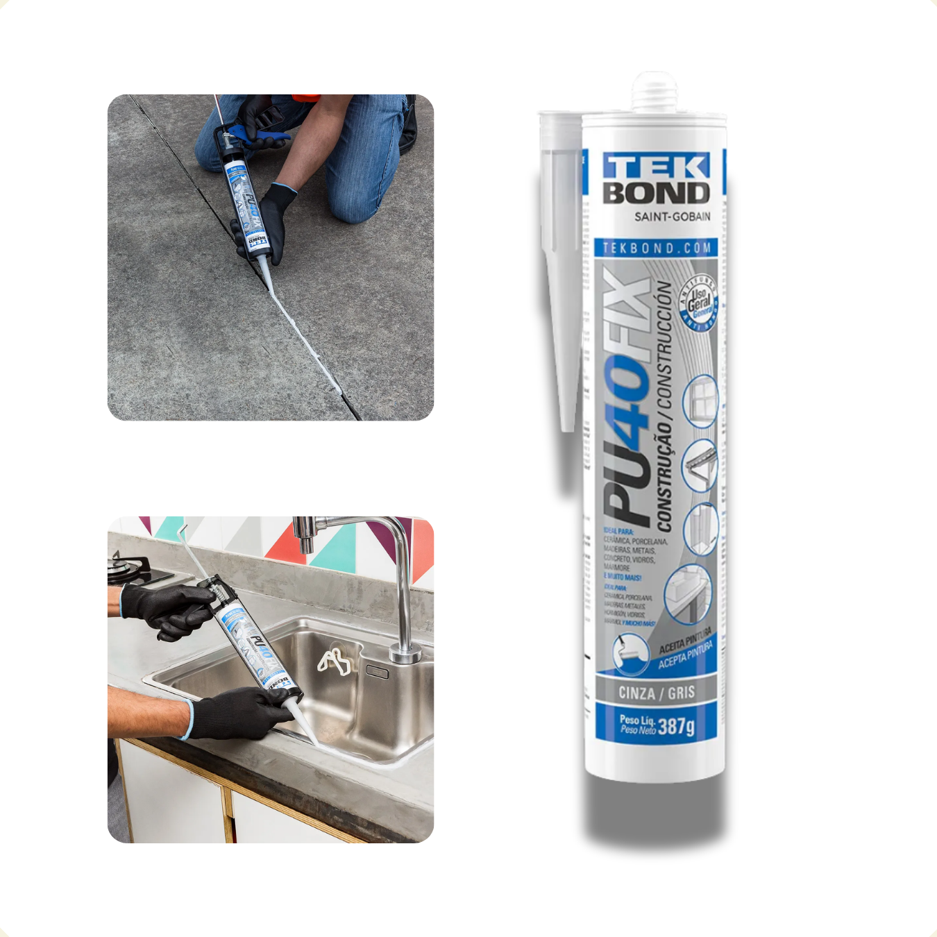 O Adesivo PU40 Fix Cinza da Tek Bond é um selante de alto desempenho, ideal para fixação e vedação em diversas superfícies. Com excelente aderência, ele é indicado para aplicações em metais, madeiras, vidros, plásticos e concretos, proporcionando um acabamento resistente e flexível. Sua fórmula à base de poliuretano garante alta durabilidade e resistência a impactos e vibrações. Além disso, o PU40 Fix suporta intempéries e variações de temperatura, sendo perfeito para aplicações automotivas, industriais e na construção civil.