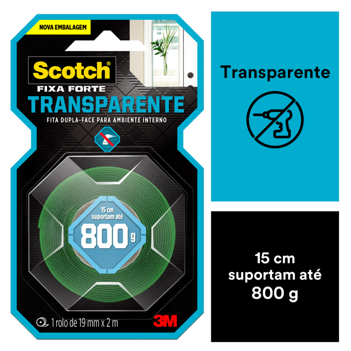 A Fita Dupla Face 3M Scotch® Fixa Forte Transparente é a solução mais prática para fixar quadros, espelhos e peças de decoração. Por ser transparente, é ideal para fixar objetos em superfícies que exibam a fita aplicada, como vidro e acrílico. Sua aplicação é fácil, evitando furos e sujeira.