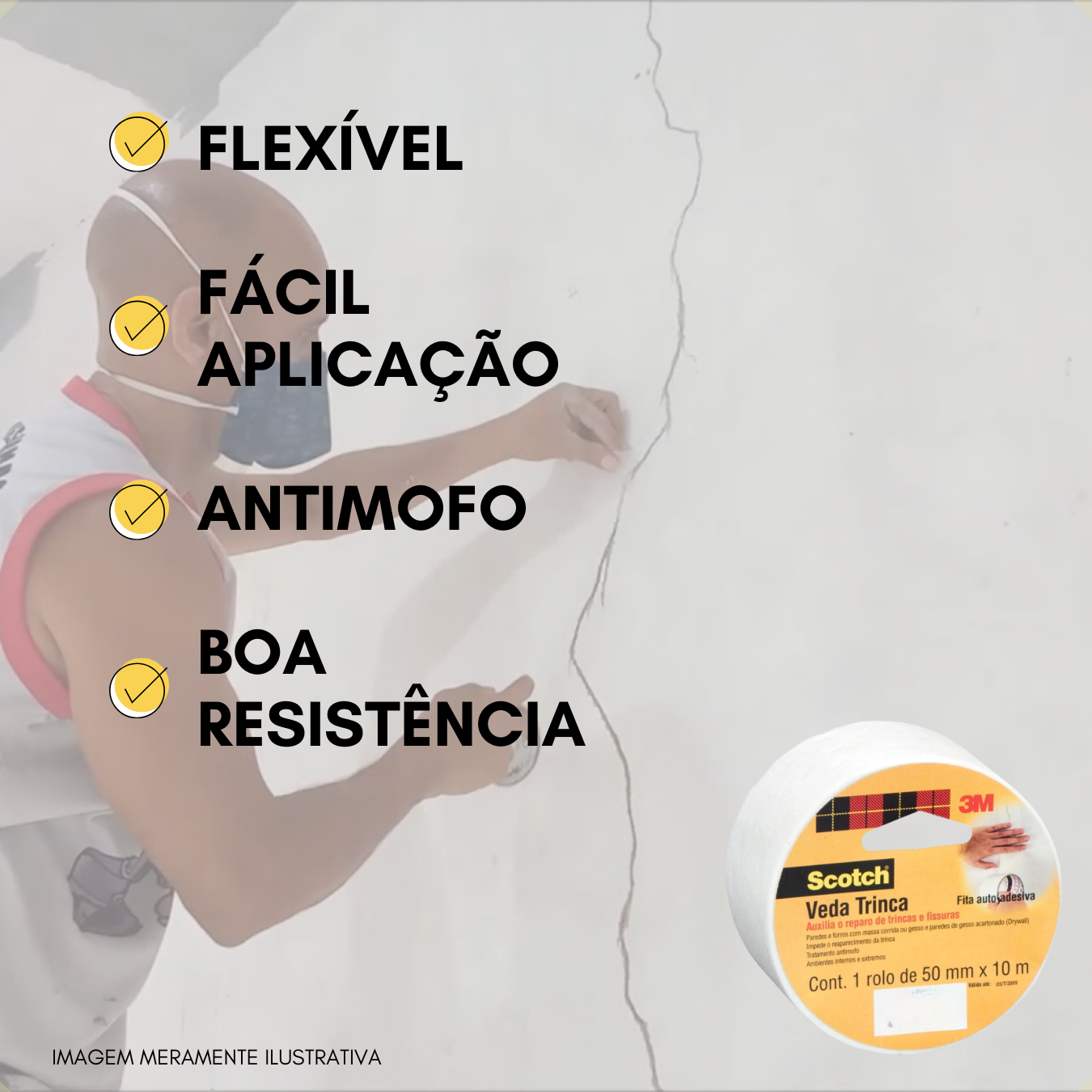 – Largura de 50mm e comprimento de 10 metros, proporcionando boa cobertura.