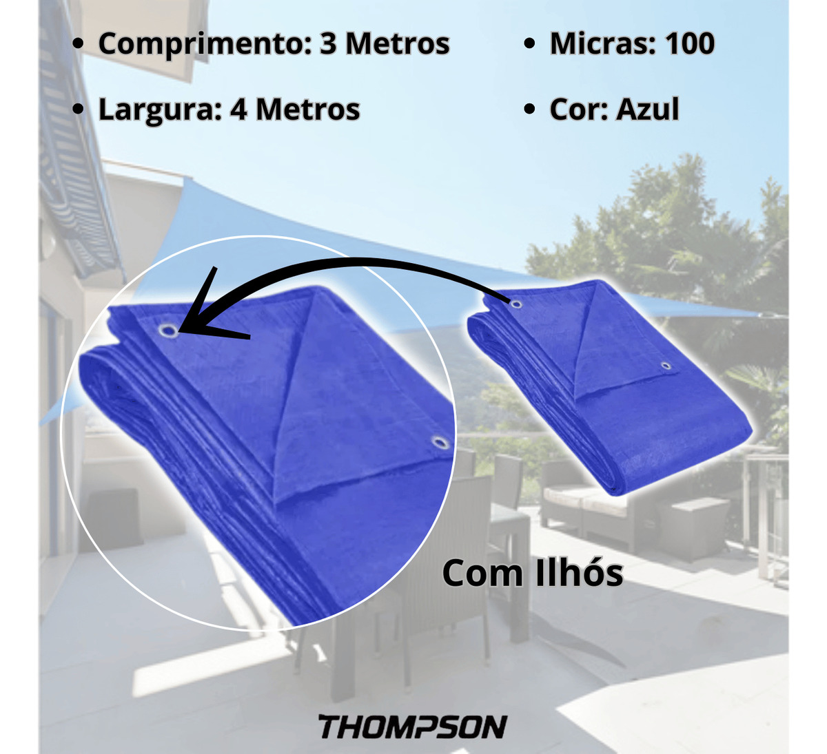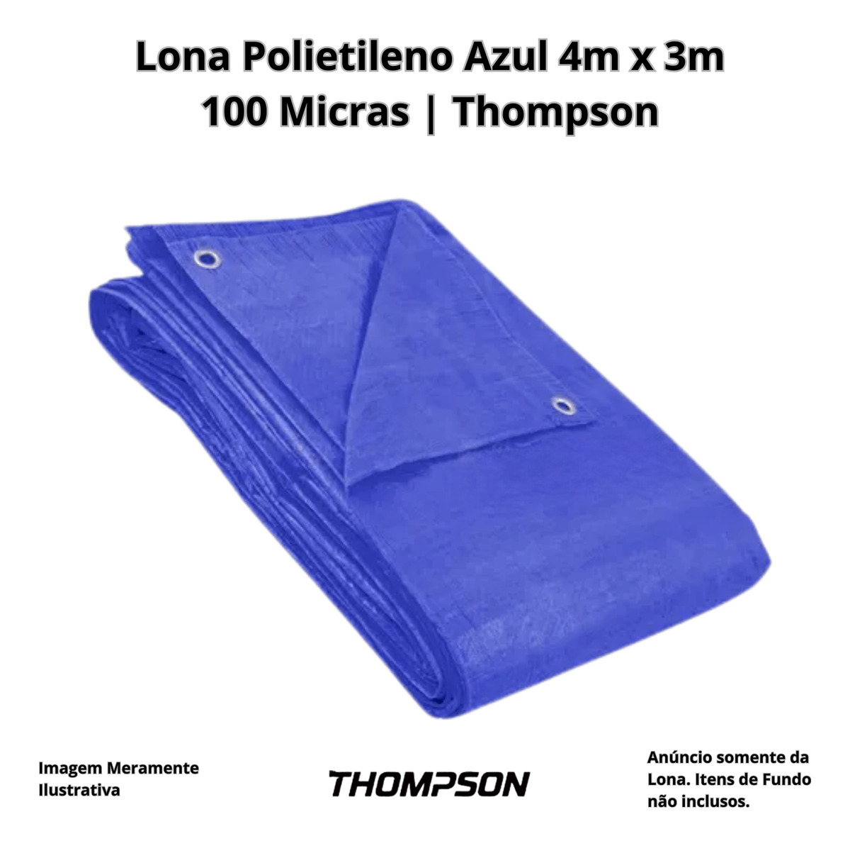Lona Plástica Polietileno | Azul | 4m x 3m | Thompson | 100 Micras | Com Ilhós | Proteção UV