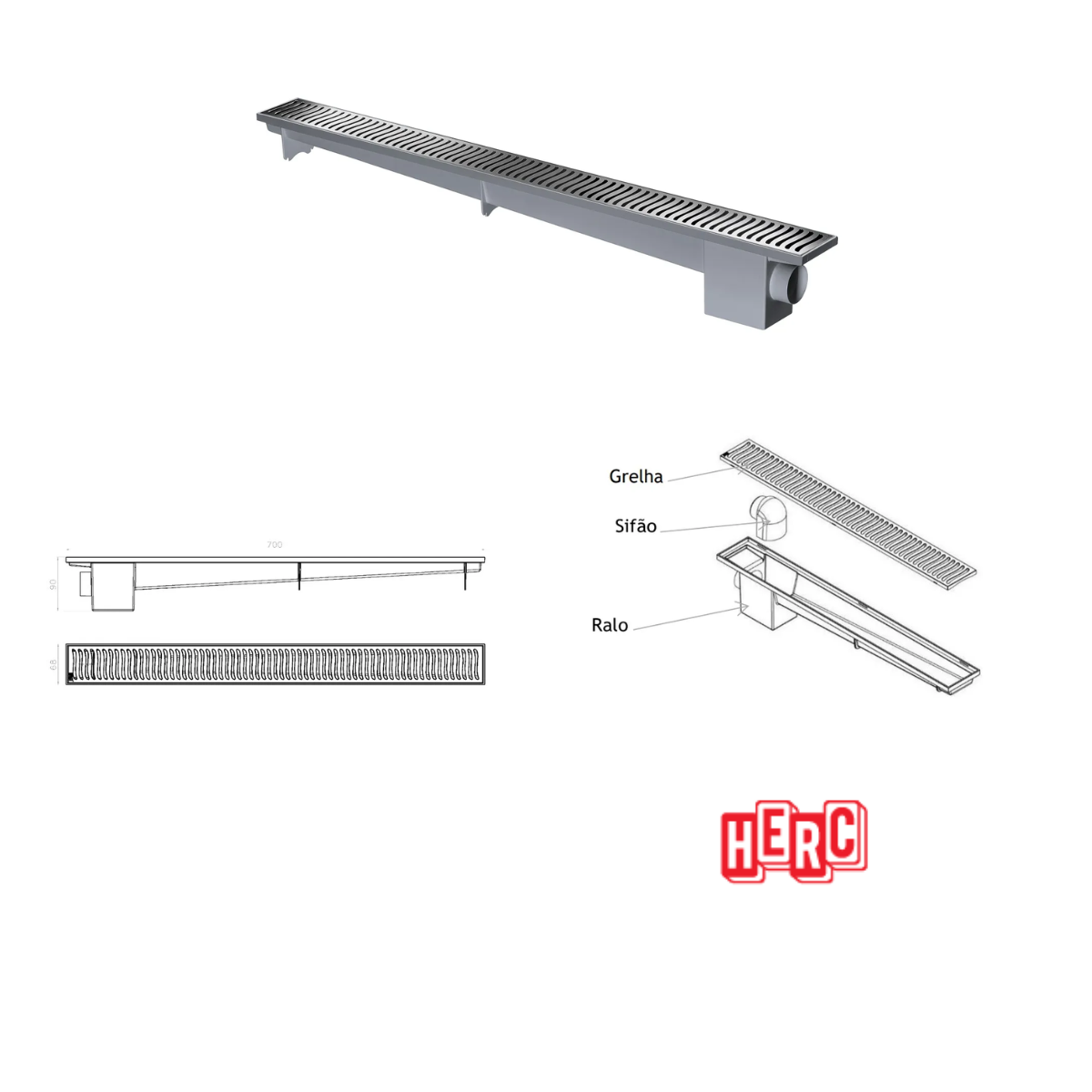 Ralo Linear Modulável Sifonado 70cm Cromado 4030 – Herc