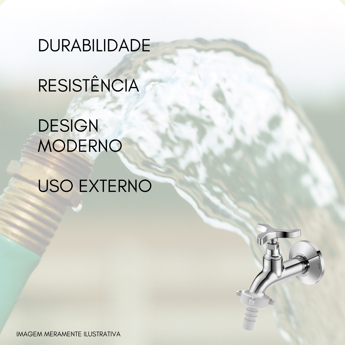 O principal benefício desse produto é a durabilidade e resistência. A nossa torneira para jardim pode ser instalada em ambientes externos sem a preocupação com desgaste imediato. O desenho desse produto foi pensado para proporcionar a melhor experiência com a água,e o volante torna a pega mais fácil.É um produto bonito e moderno para compor qualquer ambiente.