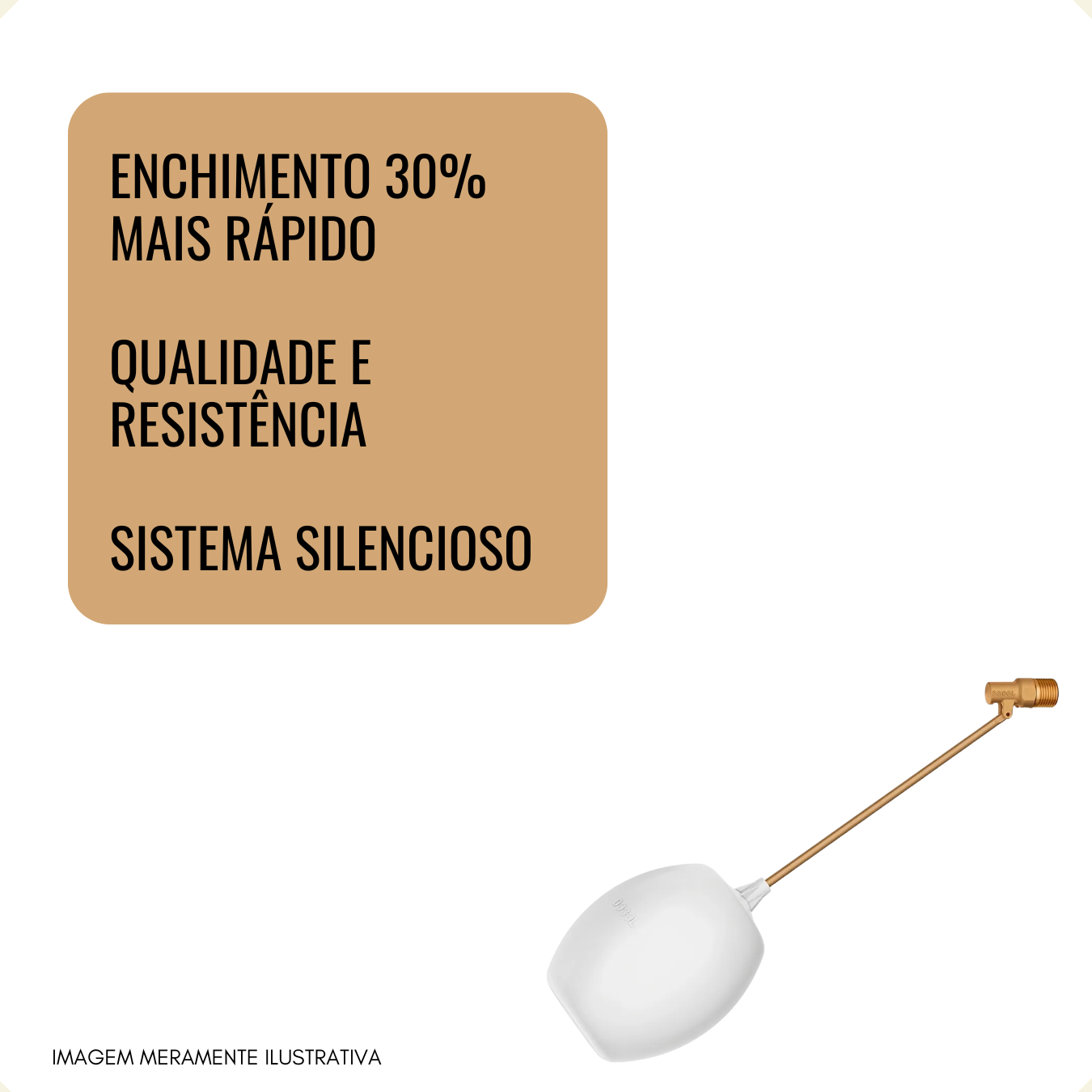 Funcionamento eficiente: Garante enchimento rápido e silencioso, mesmo em sistemas de alta pressão.